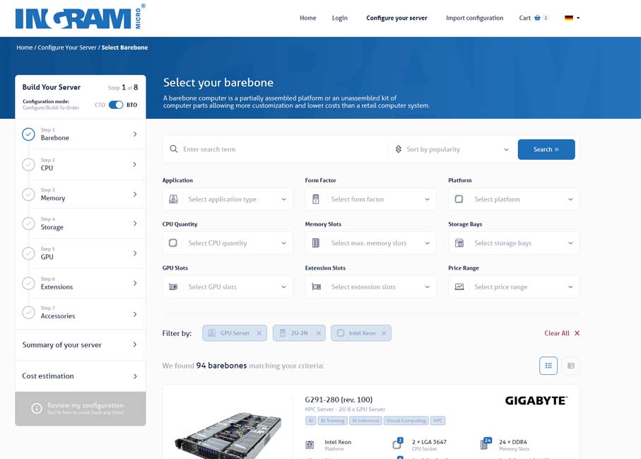 With our new configurator you can easily plan the servers for your next projects. Filter components by all possible criteria and compare them with each other. Play around with the prices and request final quotes right away from the tool. It’s never been so easy!